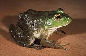 A sort of wordsum. An amphibian found in the USA is found by taking the name for a male animal (think cow!) and adding the name of gloomy misty weather and inserting , the abbreviation for Rex (King).