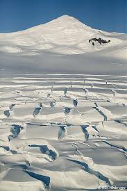 This is another cryptic definition that relates to a tear or crack (rent) in the rock (ground) high up (on a mountain). Another nicely misleading clue!