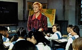 {SCHOOLMAAM} – a verb meaning to train followed by the person married to pop, the A from the clue and the initial letter (source) of Mischief